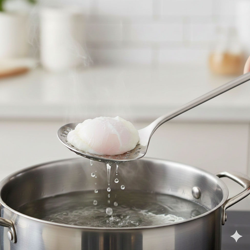 Curiosità: il mestolo forato è spesso utilizzato anche per preparare l’uovo in camicia. Dopo averlo cotto in acqua calda, può essere sollevato con il mestolo forato per eliminare l’acqua in eccesso senza romperlo, rendendo il servizio più semplice e preciso.